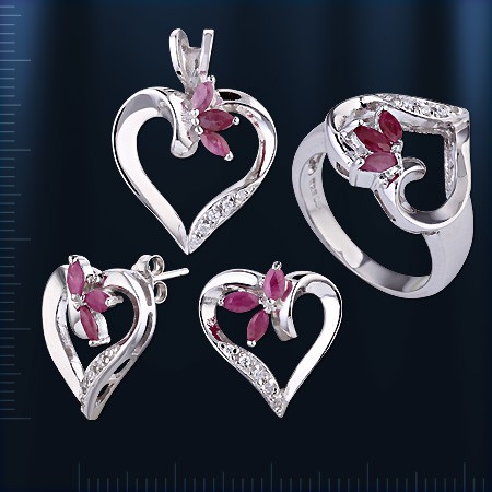 Серебряный гарнитур c рубином
