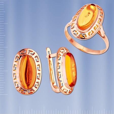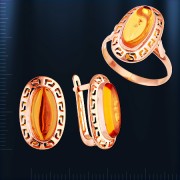 Set aus Gold 585° besteht aus Ohrringer und Ring mit Bernsteine ( 10 x 30 mm)