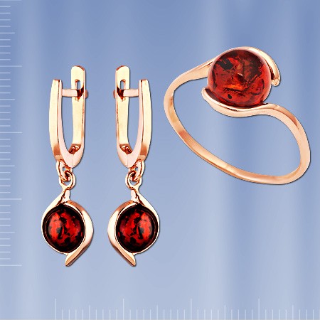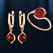 Set aus Gold 585° besteht aus Ohrhänger und Ring mit Bernsteine ( ¢ 7 mm)