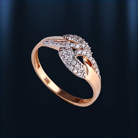 Кольцо выполнено из красного русского золота 585 пробы, украшено бесцветными цирконами Ø 1 мм, являющимися идеальной имитацией бриллианта. Кольцо прекрасно подчеркнет нежность, очарование и естественность Вашей красоты.