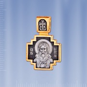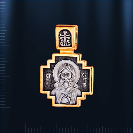 Образок Святой Сергий из чернённого серебра 925 пробы позолоченный 999 пробы. В верхней части образка имеется колечко для цепочки.