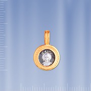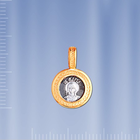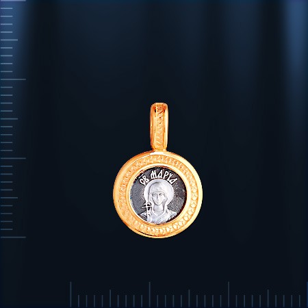 Образок Святая Мария из чернённого серебра 925 пробы позолоченный 999 пробы. В верхней части образка имеется колечко для цепочки.