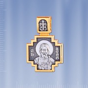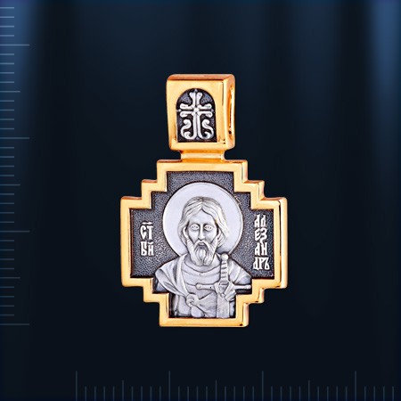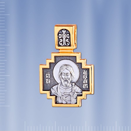 Икона Именная Святой Александр из чернённого серебра 925 пробы позолоченный 999 пробы. В верхней части образка имеется колечко для цепочки.