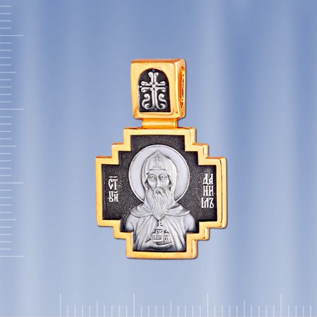 Образок Святой Даниил из чернённого серебра 925 пробы позолоченный 999 пробы. В верхней части образка имеется колечко для цепочки.
