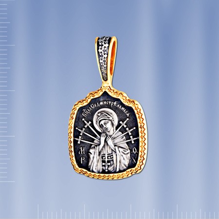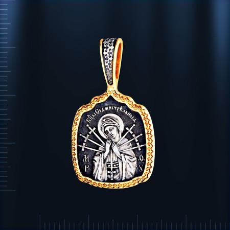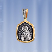 Нательная Икона Семистрельная из чернённого серебра 925 пробы позолоченный 999 пробы. В верхней части образка имеется колечко для цепочки.