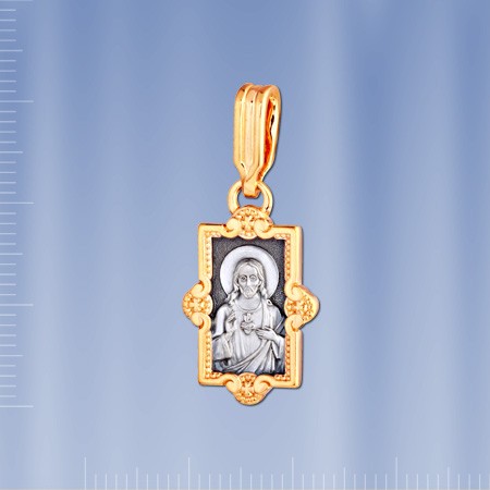 Икона нательная Иисус Христос из чернённого серебра 925 пробы позолоченный 999 пробы. В верхней части образка имеется колечко для цепочки.