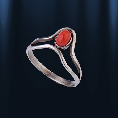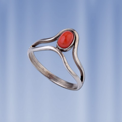 Ring mit Korallen (4 x 6 mm).  Breite ca. 10 mm