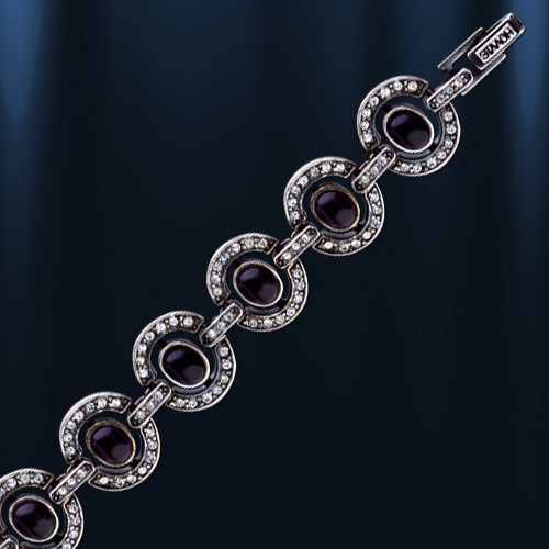 Armband mit Onyx (8 x 5 mm). Breite ca. 15 mm., Länge 18 cm