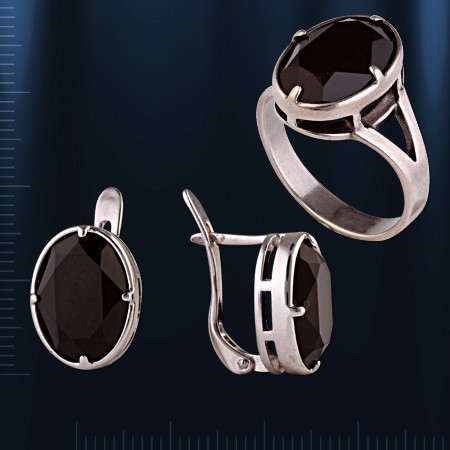 Ohrringe mit Obsidan (14 x 9 mm). Hohe ca.15 mm., Breite ca. 10 mm