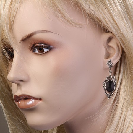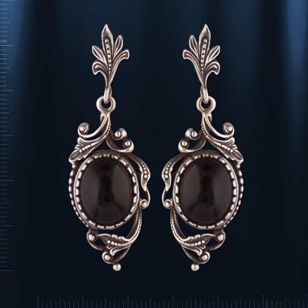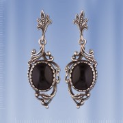 Серьги - подвески Лоза со вставкой обсидана (14 х 10 мм). Покрытие - чернённое серебрение. Элегантно и симпатично!