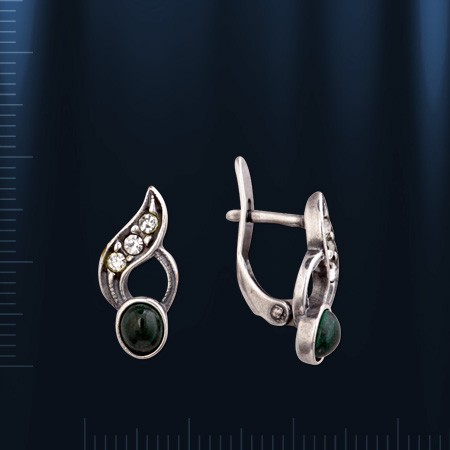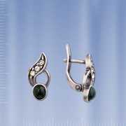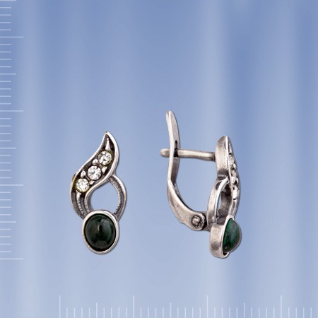 Серьги "Костёр" со вставкой малахита (4 х 5 мм), циркона ¢ 2 мм. Покрытие - чернённое серебрение. Элегантно и симпатично! Длина пр.17 мм Ширина пр.8 мм