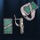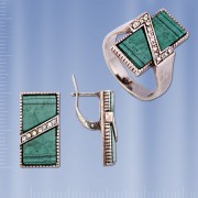 Ohrringe mit  Malahit, Zirkonia. Hohe ca.22 mm., Breite ca. 12 mm
