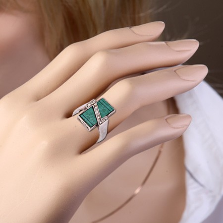 Ring mit  Malaxit, Zirkonia. Breite ca. 22 mm