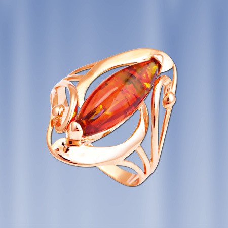 Zu jedem Outfit passt dieser Bernsteinring aus unserer Kollektion. Der Ring aus massiven 585er (14kt) russischen Rotgold hat eine geschwungene, zum Ringkopf hin verlaufende, polierte Ringschiene und präsentiert im Zentrum einen großen Bernstein in einem neuen und besonders aufwändigen Flame-Design. Der Stein mit ca. 18 x 6 mm sitzt in teilgeschlossener Zargenfassung. Bedingt durch die Natur der Edelsteine kann es zu Abweichungen in Farbe und Struktur der Steine kommen, was aber die Individualität der Schmuckstücke erhöht.