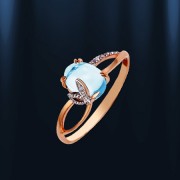 с небесно - голубым топазом (кабошон овал 8 х 6 мм., 0.343) и сверкающими цирконами (¢ 1 мм)