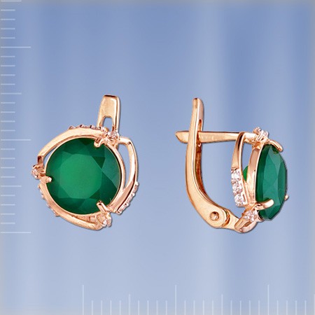 Rotgold 585° verziert mit 2 Chrysopras (¢ 8 mm 0.670 Ct) und 24 Fianitenen ¢ 1mm. Diese schillernden Ohrringer werden Sie mit Schönheit und Eleganz begeistern.