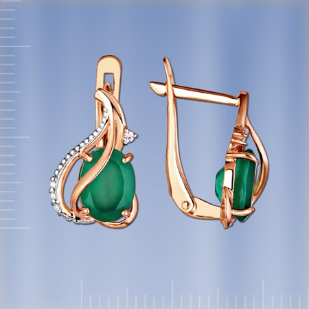 Ohrringer aus Rot/Weißgold 585° verziert mit 2 Chrysopras (8 x 6 mm 0.420 Ct) und 10 Fianitenen ¢ 1mm. Diese schillernden Ohrringer werden Sie mit Schönheit und Eleganz begeistern.