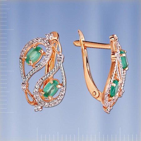 Ohrringer aus Rot/Weißgold 585° verziert mit 2 Chrysopras  (5 x 3 mm 0.190 Ct) und 56 Fianitenen ¢ 1mm. Diese schillernden Ohrringer werden Sie mit Schönheit und Eleganz begeistern.