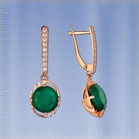 Ohrhänger aus Rot/Weißgold 585° verziert mit 2 Chrysopras (¢ 10 mm 1.324 Ct) und 18 Fianitenen ¢ 1mm. Diese schillernden Ohrhänger werden Sie mit Schönheit und Eleganz begeistern.