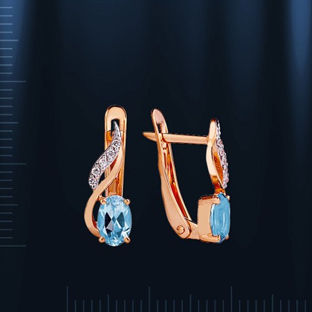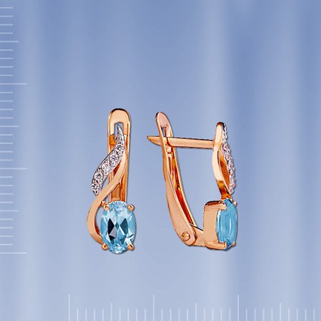 русского золота. Вставки: 2 голубого топаза (овал 6 х 4 мм 0.207 ct), 10 блестящих