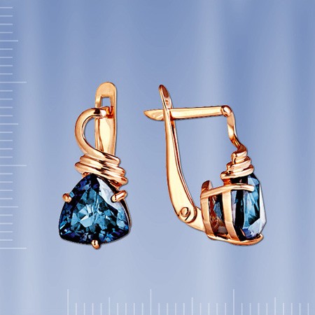 русского золота. Вставки: 2 лондонского топаза (триллион 8 х 8 мм 0.840 ct)