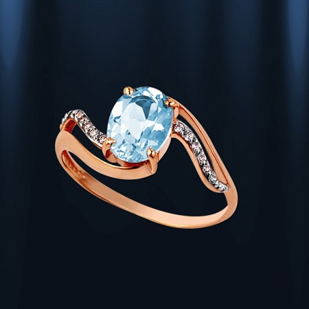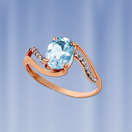 Выразительное и нежное кольцо из красного золота с восхитительным небесно-голубым топазом и милыми бесцветными фианитами. Украшение, словно создано дарить своей обладательнице изысканность, великолепие и лучезарное настроение каждый день!
