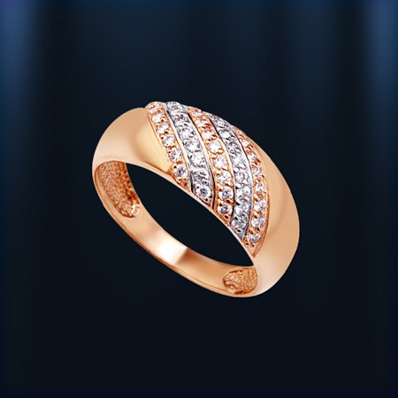 Изготовлено кольцо без лишней причудливости – сияние фианитов умело и аккуратно подчеркнёт блеск в глазах девушки от восхищения ювелирной драгоценностью! Элегантное кольцо – отличный подарок для леди на день рождения или любой другой торжественный день!