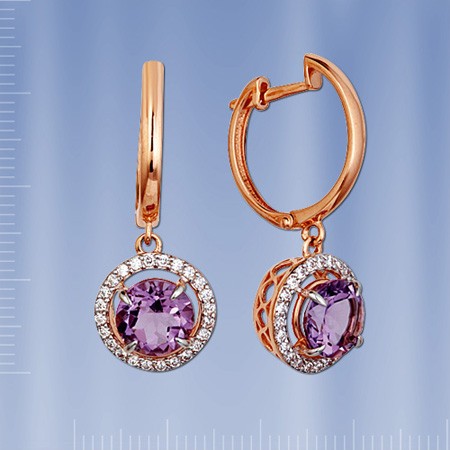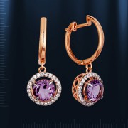 Rotgold 585° verziert mit 2 Korund (¢8 mm 0.693 Ct) und 48 Fianitenen ¢ 1mm. Diese schillernden Ohrringer werden Sie mit Schönheit und Eleganz begeistern.