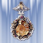 Вставка : 3 фианита ¢ 3 мм., 16 сверкающих фионитов (¢ 1 мм)