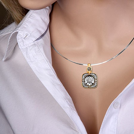 На лицевой стороне изображен Нерукотворной образ Спасителя, который Он запечатлел на плате и передал для исцеления больному проказой царю Эдессы. На оборотной стороне образка изображена Казанская икона ПресвятойБогородицы — одна из самых почитаемых в России. Икона была явлена на пожарище в Казани в 1579 году. В 1904 году святыня была похищена и уничтожена, но чудотворную силу иконы Богородица явила во многих ее списках. По молитве к Казанскому образу совершаются исцеления, а также множество чудес, связанных с помощью в устроении личной жизни.