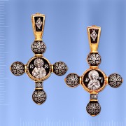 Распятие Христово. Господь Вседержитель.Икона Божией Матери Умиление Серафимо-Дивеевская. Православный крест из чернённого серебра 925 пробы позолоченный 999 пробы.