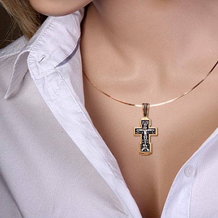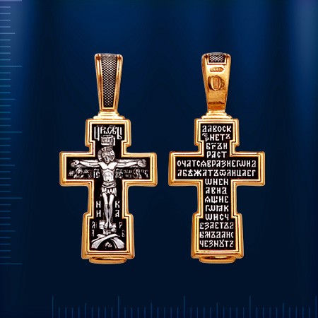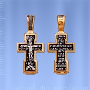 Распятие Христово. Молитва "Да воскреснет Бог". Православный крест из чернённого серебра 925 пробы позолоченный 999 пробы.