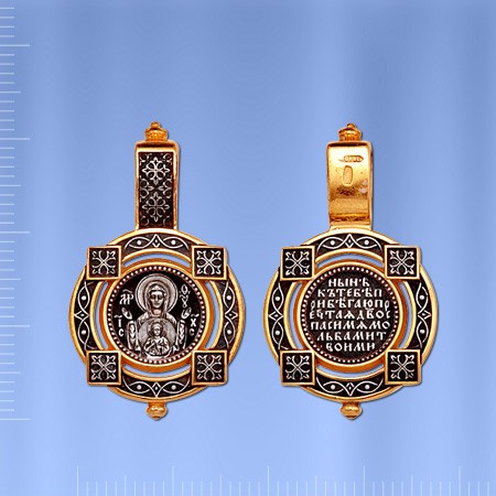 Икона Божией Матери "Знамение". Иконка из чернённого серебра 925 пробы позолоченный 999 пробы.