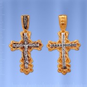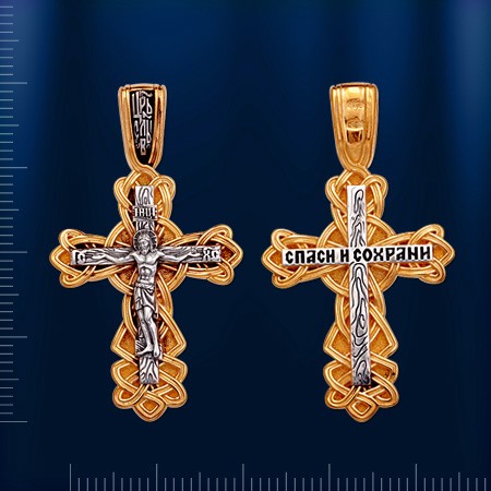Распятие Христово. Православный крест из чернённого серебра 925 пробы позолоченный 999 пробы.