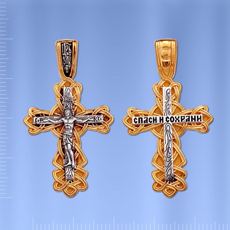 На лицевой стороне изображено Распятие Господа Иисуса Христа.На обороте традиционная молитва к Спасителю:«Спаси и сохрани».
