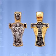 На лицевой стороне образка, выполненного в виде щита,закрывающего крест, изображен Ангел-Хранитель. Это Ангел,который дается каждому человеку в Крещении для попечения и защиты его души. Ангел-Хранитель неотступно находится рядом с человеком, помогая, оберегая и наставляя его, а после смерти сопровождает его душу через мытарства. На обороте написана молитва Ангелу-Хранителю:«Ангеле Божий, хранителю мой святый, не остави мене