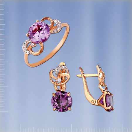 Set der russischen Rotgold 585°mit Korund Alexandrit besteht  aus Ohrringer OR21834 und Ring R20723