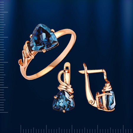 Очаровательные чувственные серьги выполнены из красного русского золота. Вставки: 2 Лондонского Топаза (триллион 8 х 8 мм 0.840 ct)