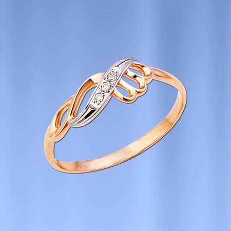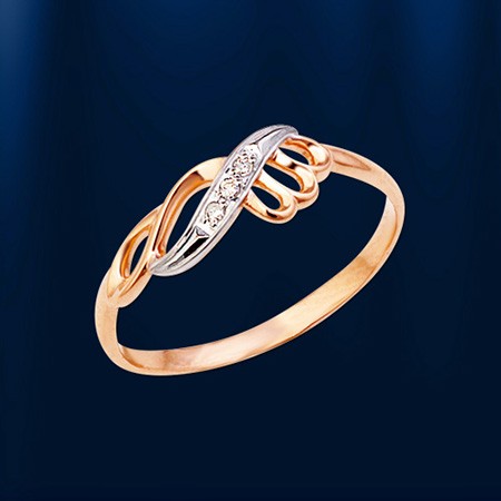 Тонкое изящное золотое кольцо с бриллиантами для красивых женских пальчиков! Кольцо из русского красного, комбинированного с белым, золота 585º.