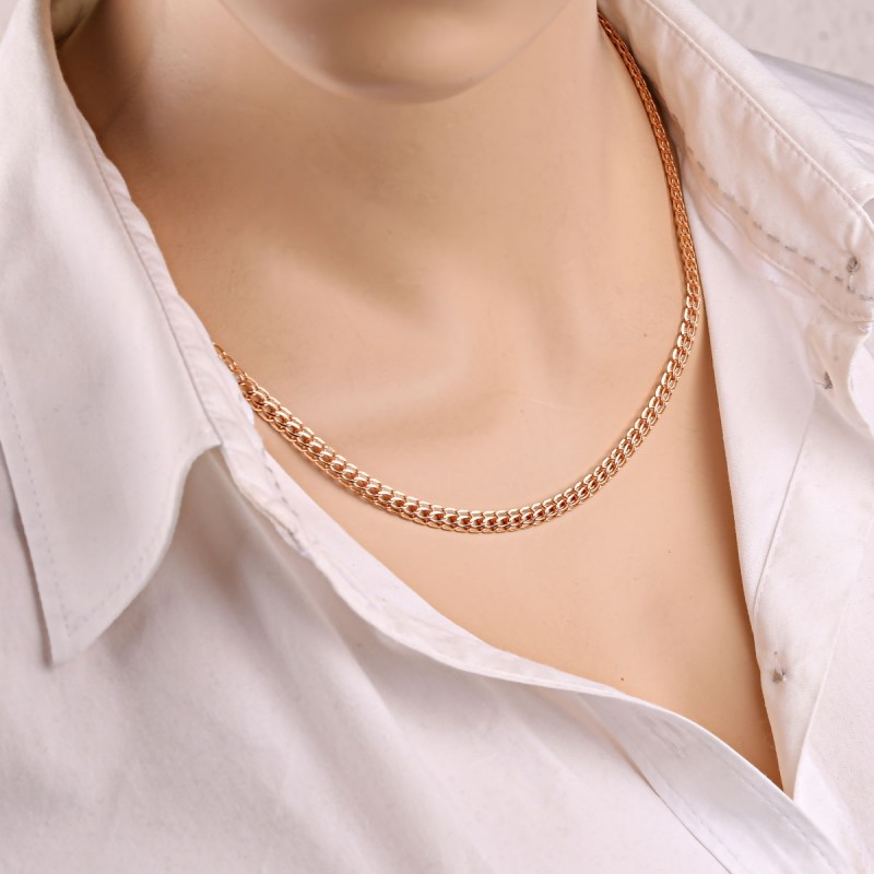 Halskette Rosegold 585 Bismarck. Klassische Goldkette aus 585 rotem russischem Gold mit Diamantschliff. Diese tolle Kette schmückt sowohl den Hals und die Brust des Herren als auch der Dame. Ketten aus Gold setzen den nötigen Akzent im Bild und machen auf den Reichtum und Luxus der Accessoires aufmerksam, denn Gold ist schön, stilvoll, schick und teuer.