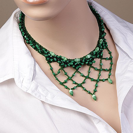 Колье сказочной красоты. Нарядное,скорее даже торжественное. Вечернее украшение. Подойдёт для особых случаев. Украшено бисером и малахитом.