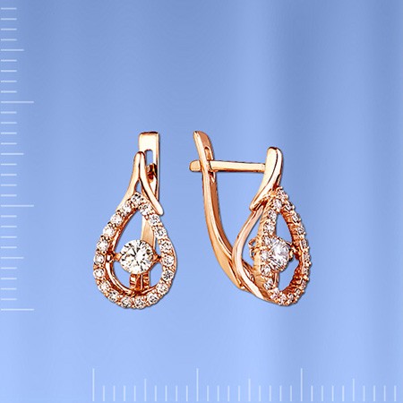 выполнены из русского красного золота 585 пробы в форме капелек, усыпаной по краям бриллиантами. В центре каждой серьги помещен крупный бриллиант на подвижном подвесе - качелях. Уникальная технология позволяет бриллиантам буквально оживать. Благодаря идеальной балансировке и специальному креплению, камень улавливает малейшие колебания и начинает свободно покачиваться в украшении, ловя на себе и отражая максимум света и от этого беспрерывно сверкая. Открывайте для себя новые грани бриллиантов в их беспрерывном движении!