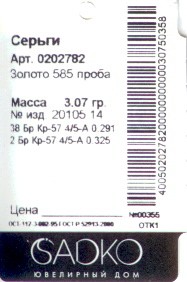 Данное качественное изделие произведено из оригинального русского золота на одном из предприятий бывшего СССР. Изделие имеет двойную пробу – штамп завода-изготовителя и штамп пробирной палаты о соответствии 585 пробе. На изделии так же имеется закрепленная на опломбированной нитке заводская этикетка-сертификат, на которой указана вся информация о изготовителе и изделии. Покупая данное изделие, вы действительно приобретаете оригинальное ювелирное украшение, выполненное по высоким советским ГОСТам!