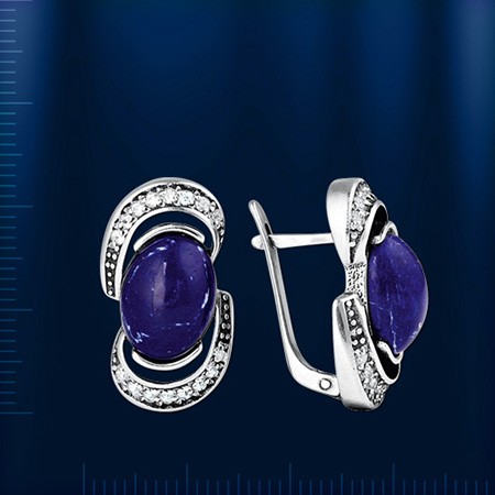 Ohrringe aus Silber 925 mit  synthetische Azurstein (14 x 10 mm). Länge ca. 25 mm.