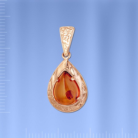 Russische Goldanhänger 585 mit Bernstein (11 x 8 mm). Länge mit Öse ca. 27 mm. Breite: ca. 13 mm.
