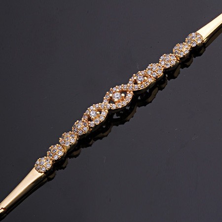 Изящный браслет выполнен из жёлтого золота 585-й пробы со сверкающими фианитами ¢1 mm с надежным вдвижным замком с дополнительным предохранителем.