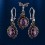 Серьги-подвески с 2 - мя аметистами (12,0 х 10,0 мм), 12 рубинов ¢ 2,0 мм, 2 изумруда ¢ 2,0 мм. Высота серёг пр.40,0 мм., ширина пр.15,0 мм.