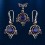 Set aus geschwärztem  Silber 925° mit synthetischem Saphiren  (¢ 10 mm), Smaragden ¢ 2 mm., Rubinen ¢ 2 mm Das Set besteht aus Anhänger und Ohrhänger