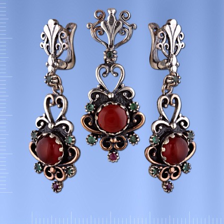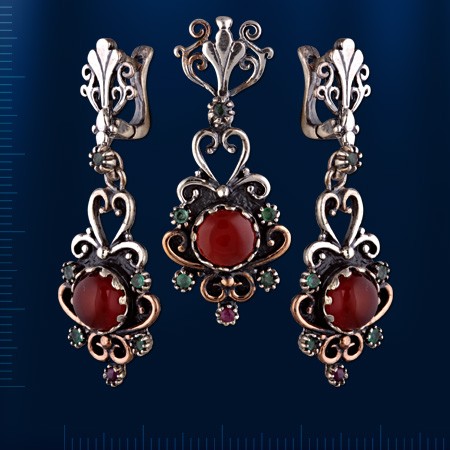 Гарнитур с гранатом. Серебро 925