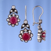 Set aus geschwärztem  Silber 925° mit Rubinen ¢ 7 mm, Fianiten ¢ 3 mm Das Set besteht aus Anhänger und Ohrhänger